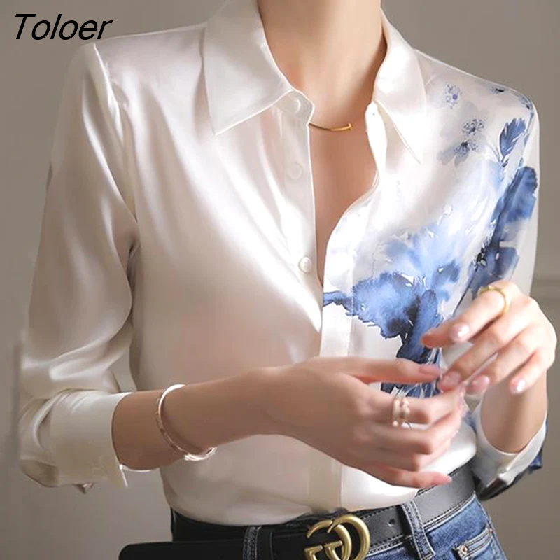deanwangkt Elegant Chiffon Blouse Women Tops Long Sleeve Vintage Satin Blouses Women Fashion Autumn Casual Loose Silk Shirt 21808