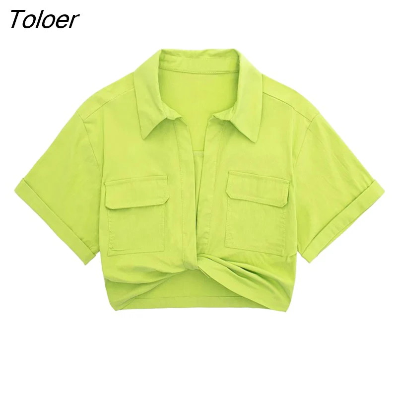 deanwangkt Women Safari Style Pockets Patch Knotted Linen Short Smock Blouse Lady Chic Kimono Cropped Shirt Blusas Tops LS1376
