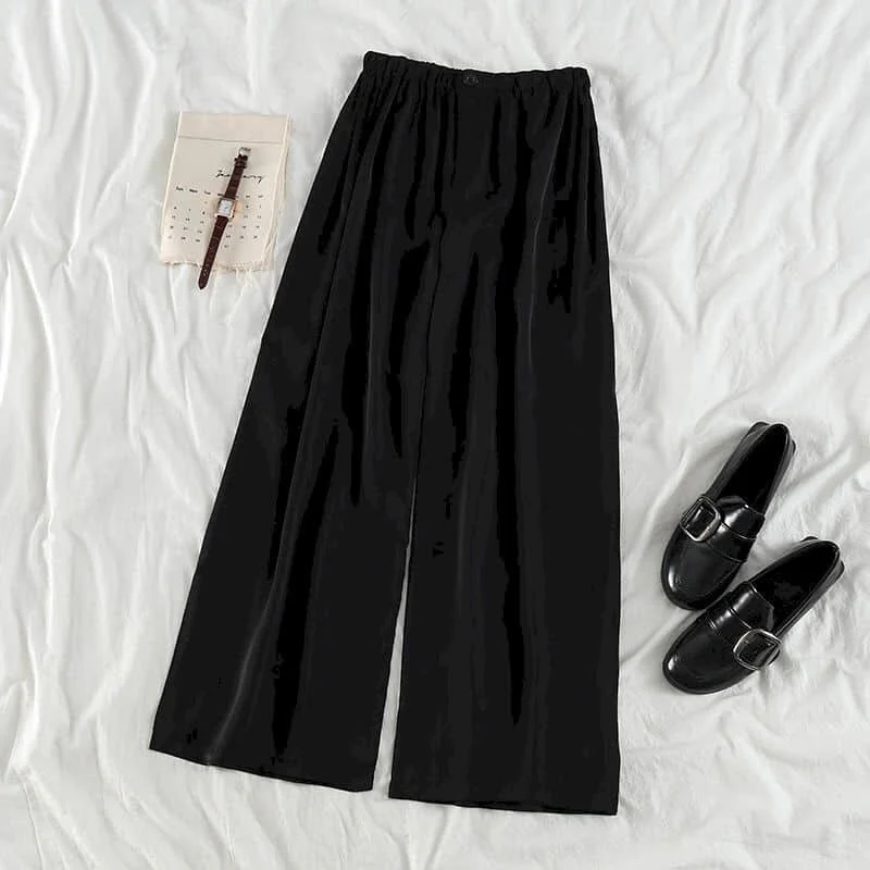 deanwangkt Vintage Two Pieces Set For Women Casual Summer Short Sleeve Shirt Blouse+Loose Wide Leg Pants Casual Female Outfits