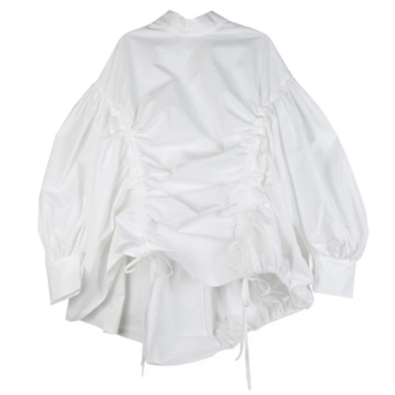 deanwangkt Women Drawstring Irregular Big Size Blouse New Stand Collar Long Sleeve Loose Shirt Fashion Spring Autumn 1DA988