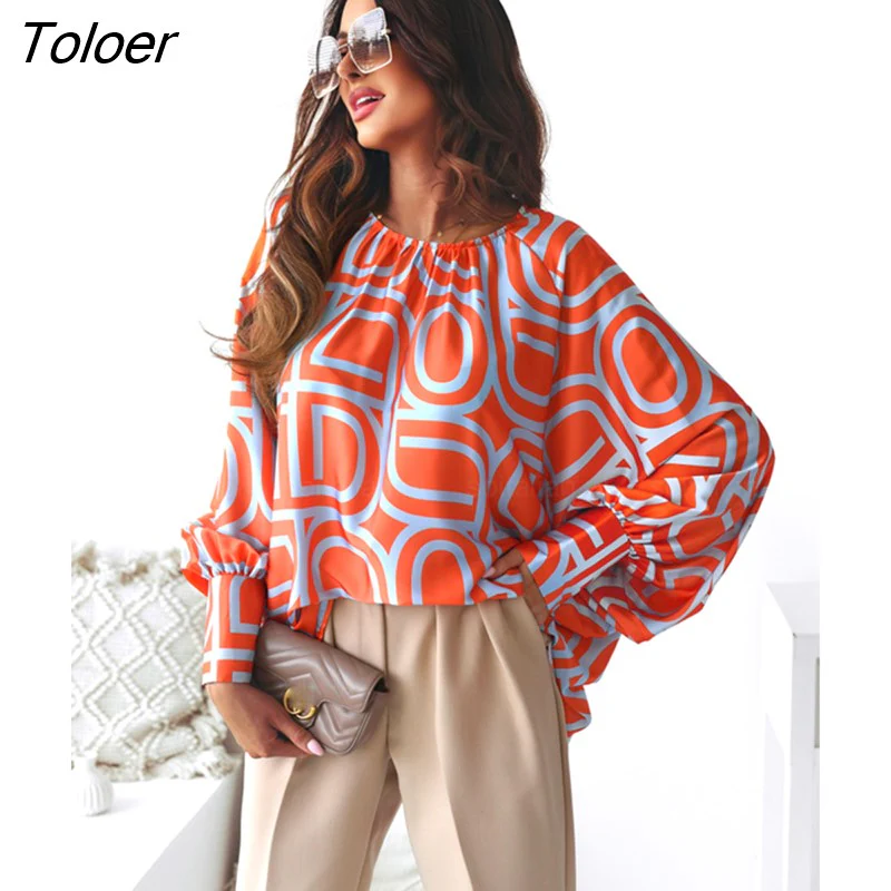 deanwangkt Loose Blouse Women Long Sleeve O-Neck Female Print Autumn Blouses Elegant Women's Shirt Top Ladies Clothing