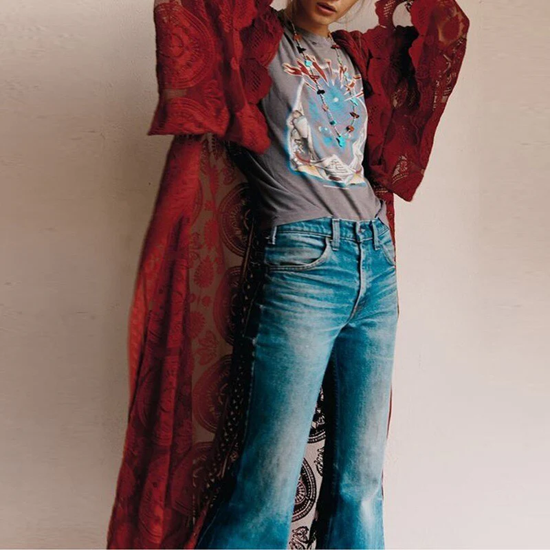 deanwangkt Lace Women Shirt Tops Lace Up Flare Sleeve Maxi Blouse Female Summer Fashion Vacation Style Clothes Plus Size