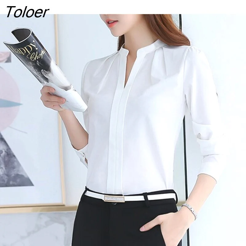 deanwangkt Oversized Chiffon Blouse Women Long Sleeve O-neck White Shirt Women Office Lady Elegant Women Blouses Blusas 861B