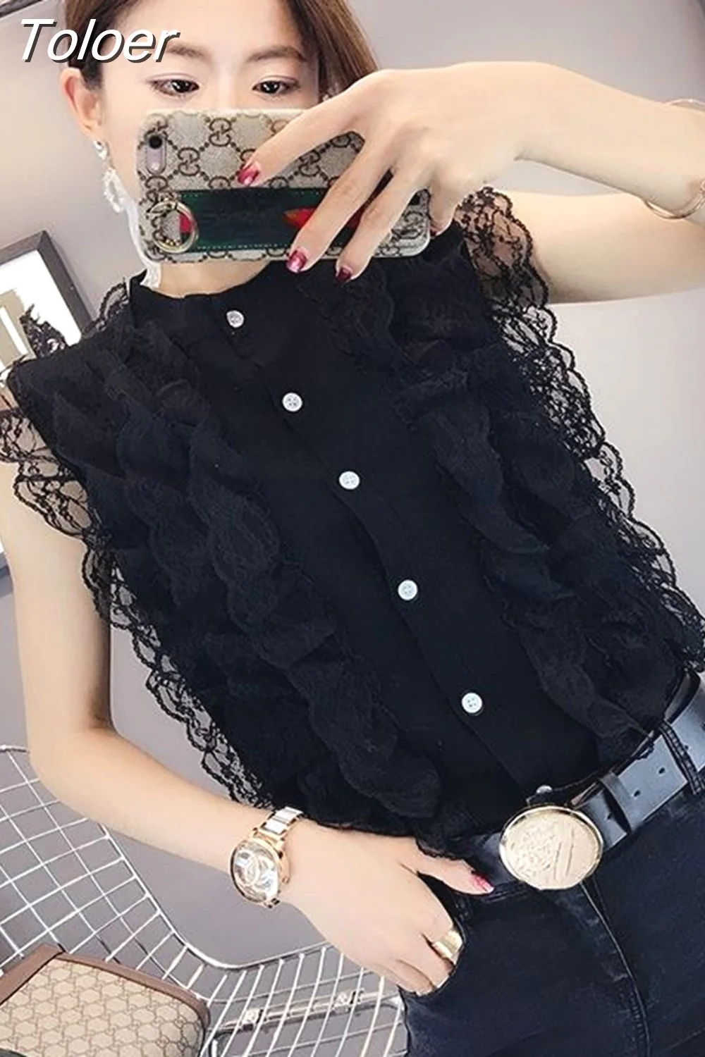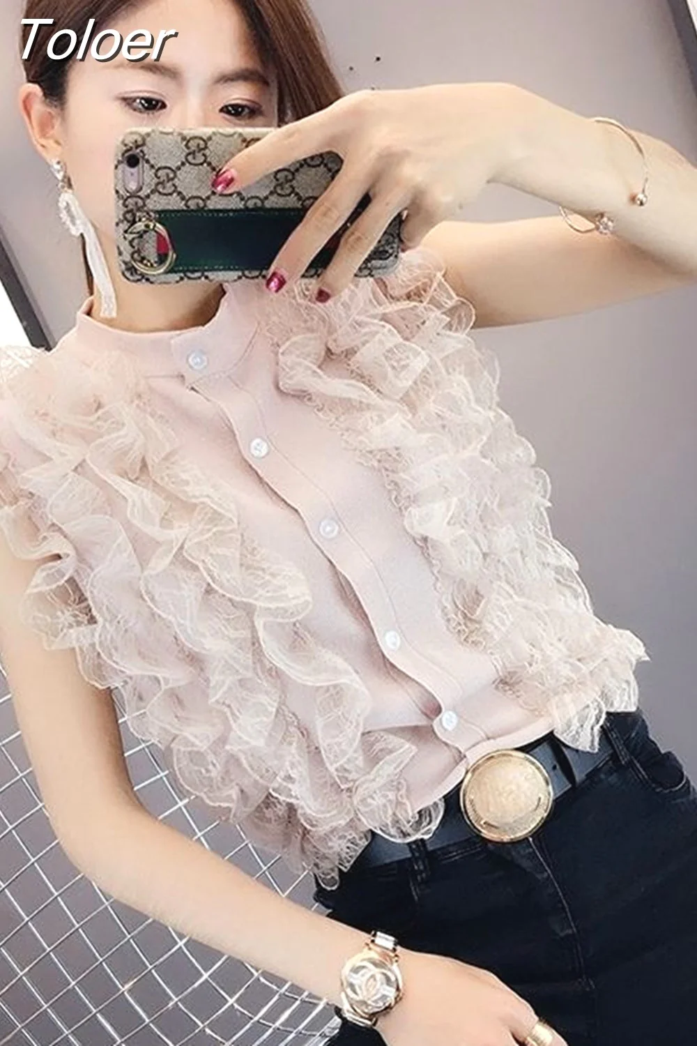 deanwangkt Blusas Mujer De Moda Summer Blouses for Women Lace Ruffles Knit Sweet Temperament Tops Female Korean Vintage Blouse Shirts