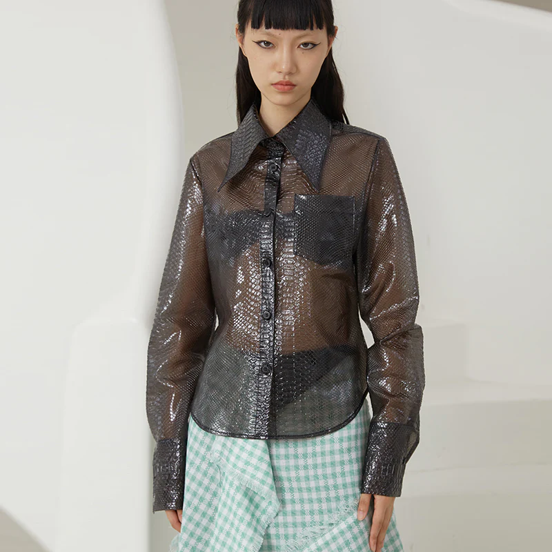deanwangkt Patchwork Casual Loose Solid Blouse Female Lapel Long Sleeve PU Shirts For Women Autumn Style New Clothes