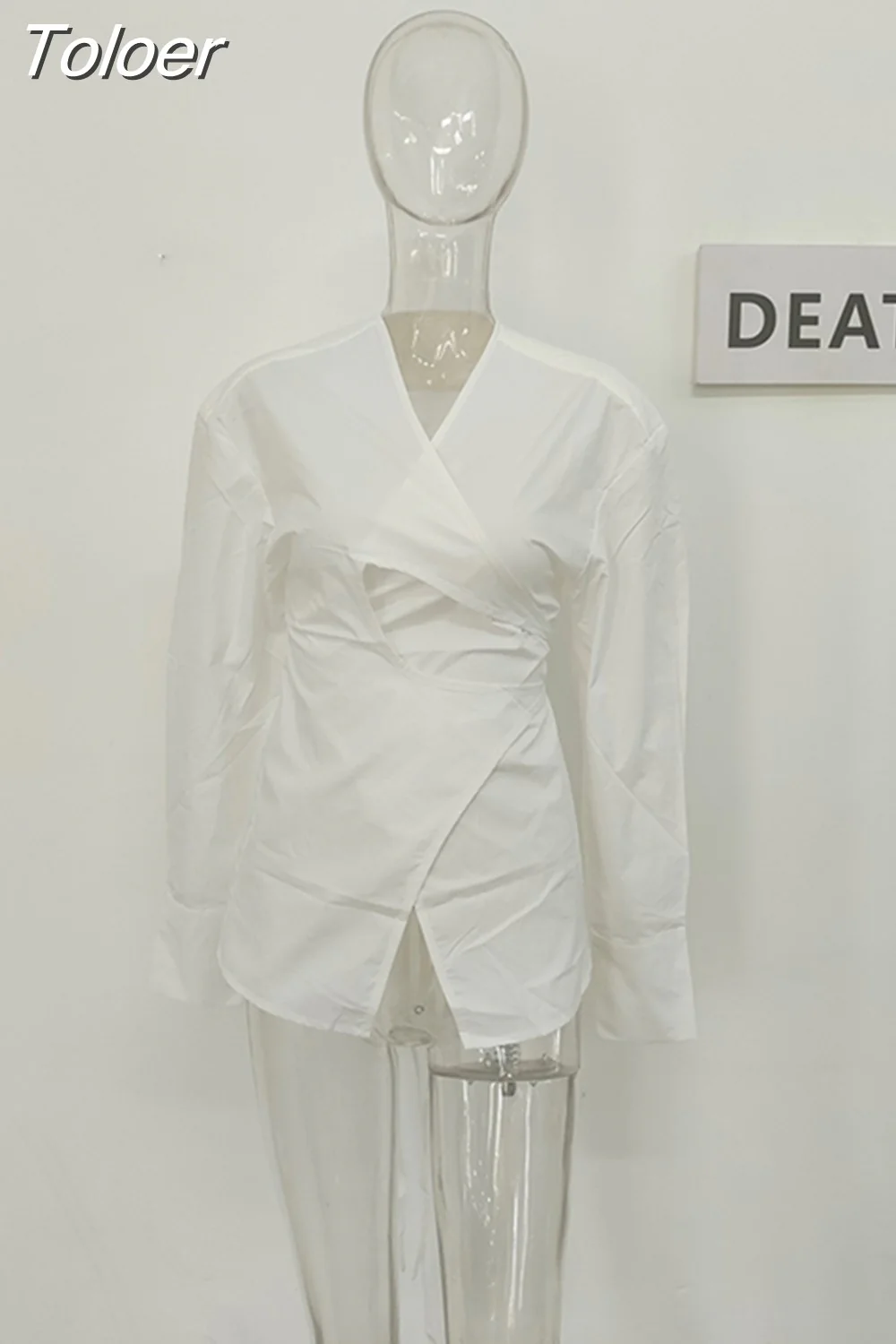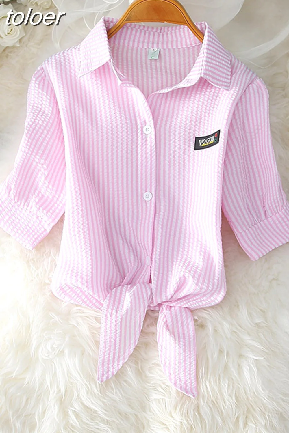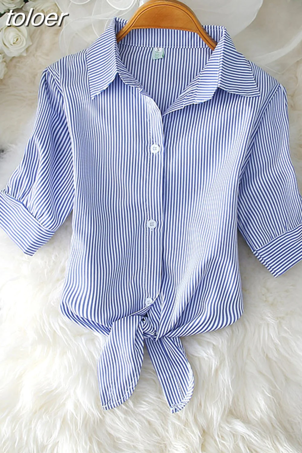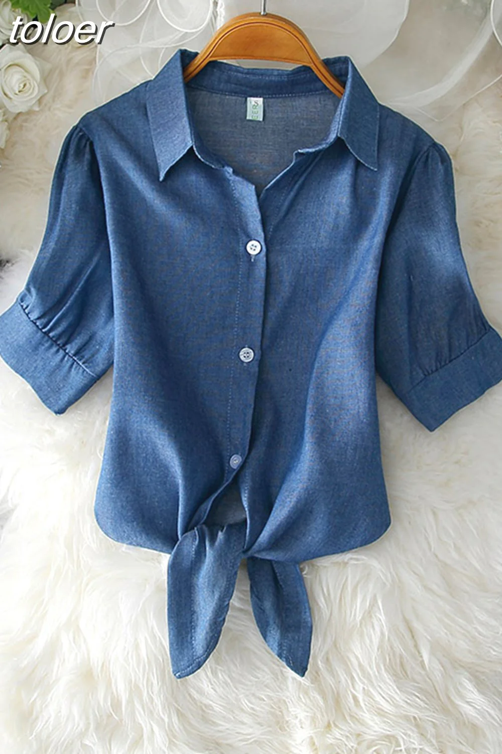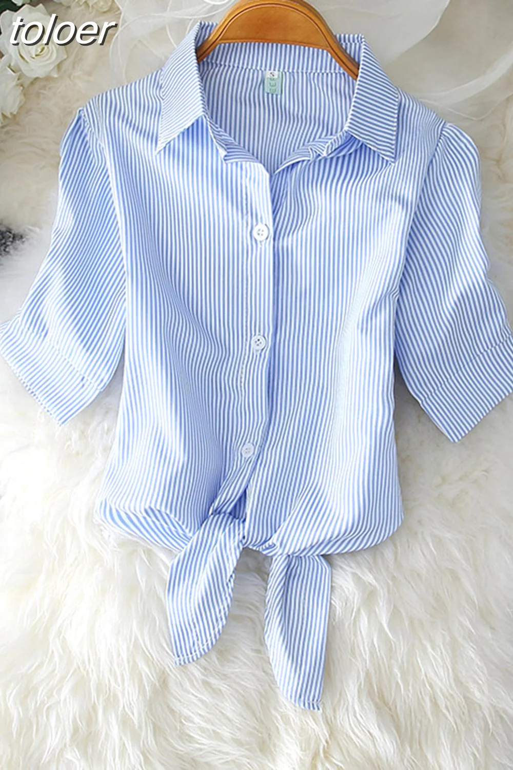 deanwangkt Summer Basic Blouses Women Solid Oversized Women Shirt Buttoned Up Shirt Top Tied Waist Elegant Women Tunics Tops 19870