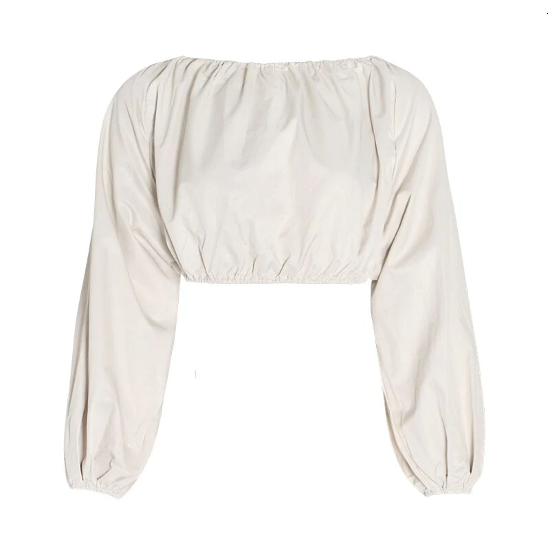 deanwangkt Backless Short Shirt Female Slash Neck Lantern Sleeve Large Size Crop Top Blouse Summer Fashion Sexy Clothing