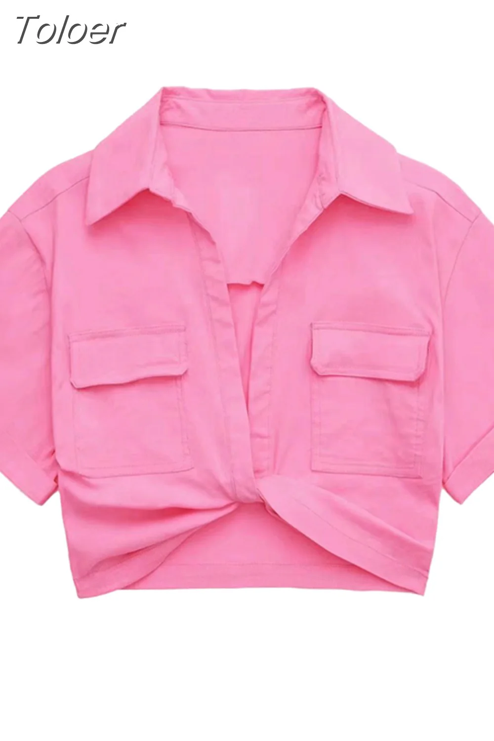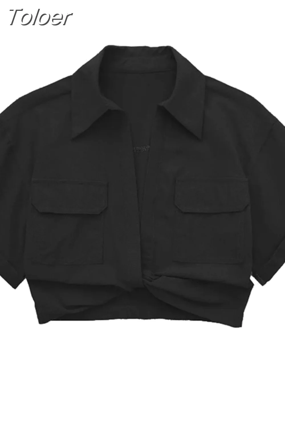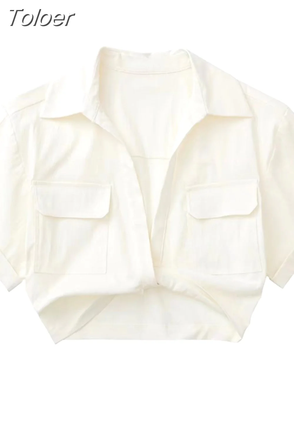 deanwangkt Lapel Short Sleeve Knot White Blouse Women Clothing Summer Fashion Deep V-neck Shirts Ladies Tops Sexy Streetwear