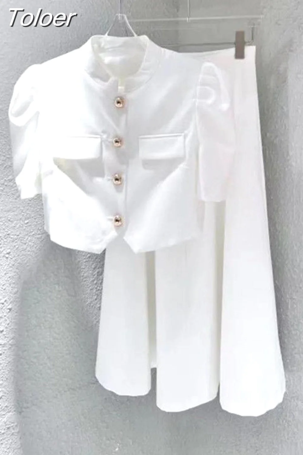 deanwangkt Quality New Summer Fashion Korean Sweet Elegant 2 Piece Set Women Crop Top Shirt Blouse Midi Skirt Suits Two Piece Outfits