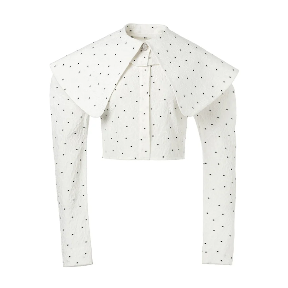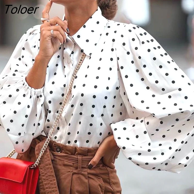 deanwangkt Office Lady White Blouse Shirt Women Polka Dot Lantern Sleeve Women Blouses Tops Oversized Loose Female Shirt Blusas 12372