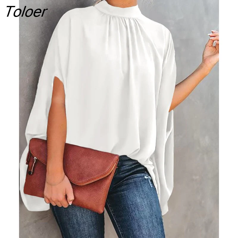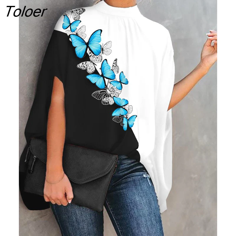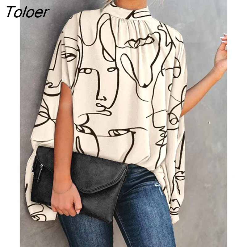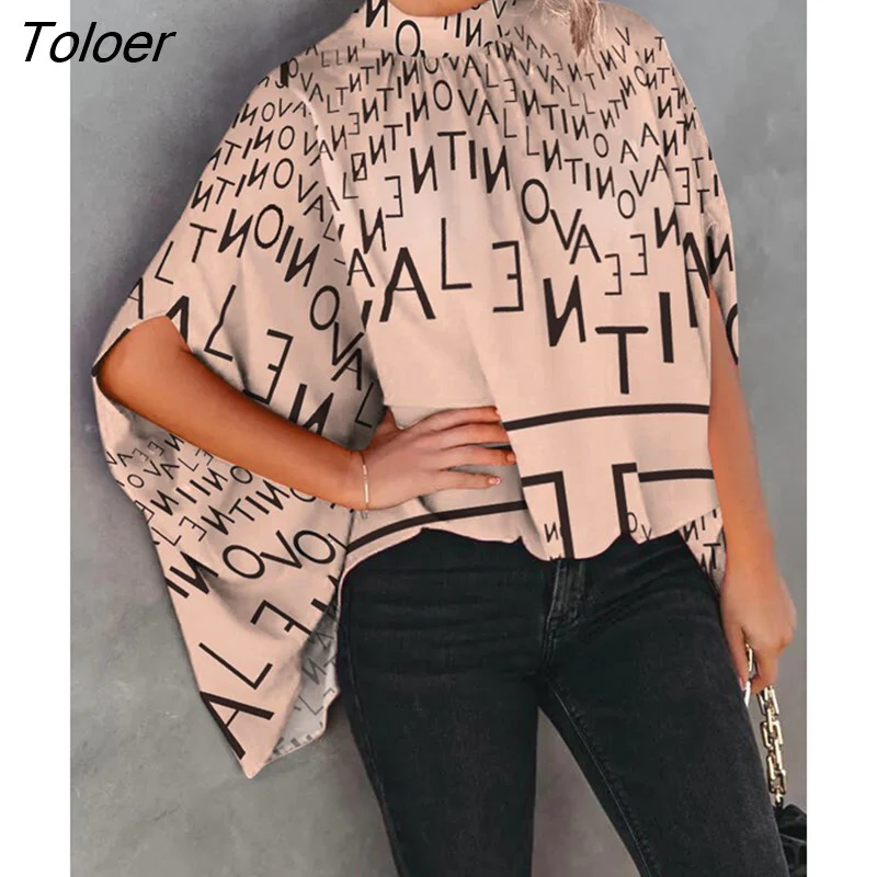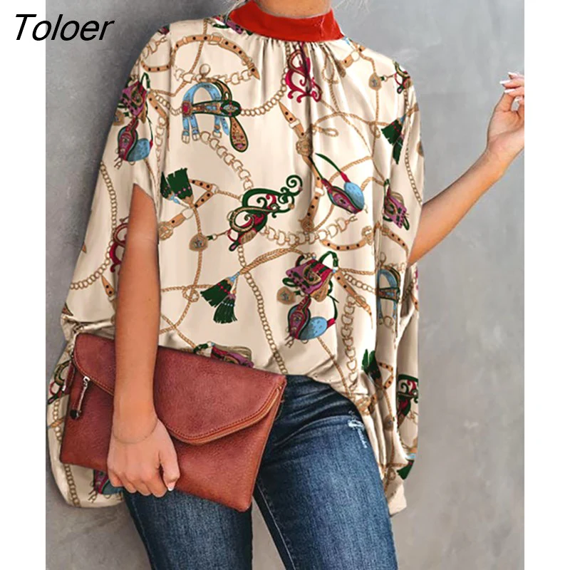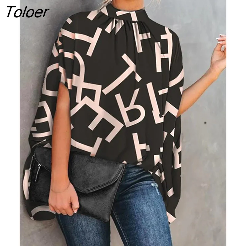 deanwangkt Loose Women's Blouse Fashion Batwing Sleeve Print O-neck Shirts Top Spring Summer Office Lady Blouses Elegant Tops