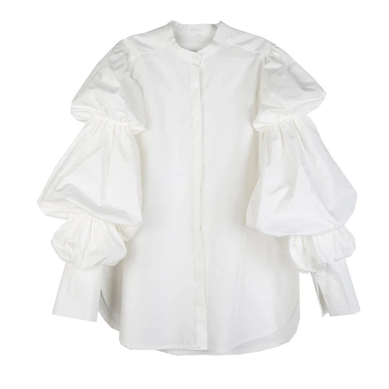 deanwangkt Vintage Loose Women's Blouses O Neck Puff Long Sleeve Ruched Autumn Shirts For Female Fashion Clothing Tide