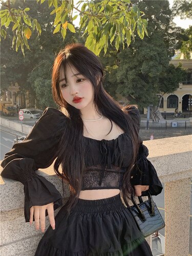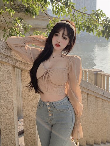 deanwangkt Korean Chic Elegant Lace Sweet Women Blouses Vintage O Neck Long Sleeve Perspective Female Shirts OL Blusas Mujer