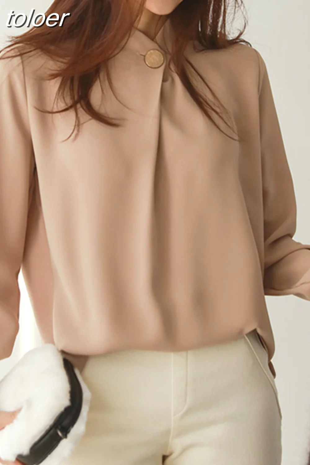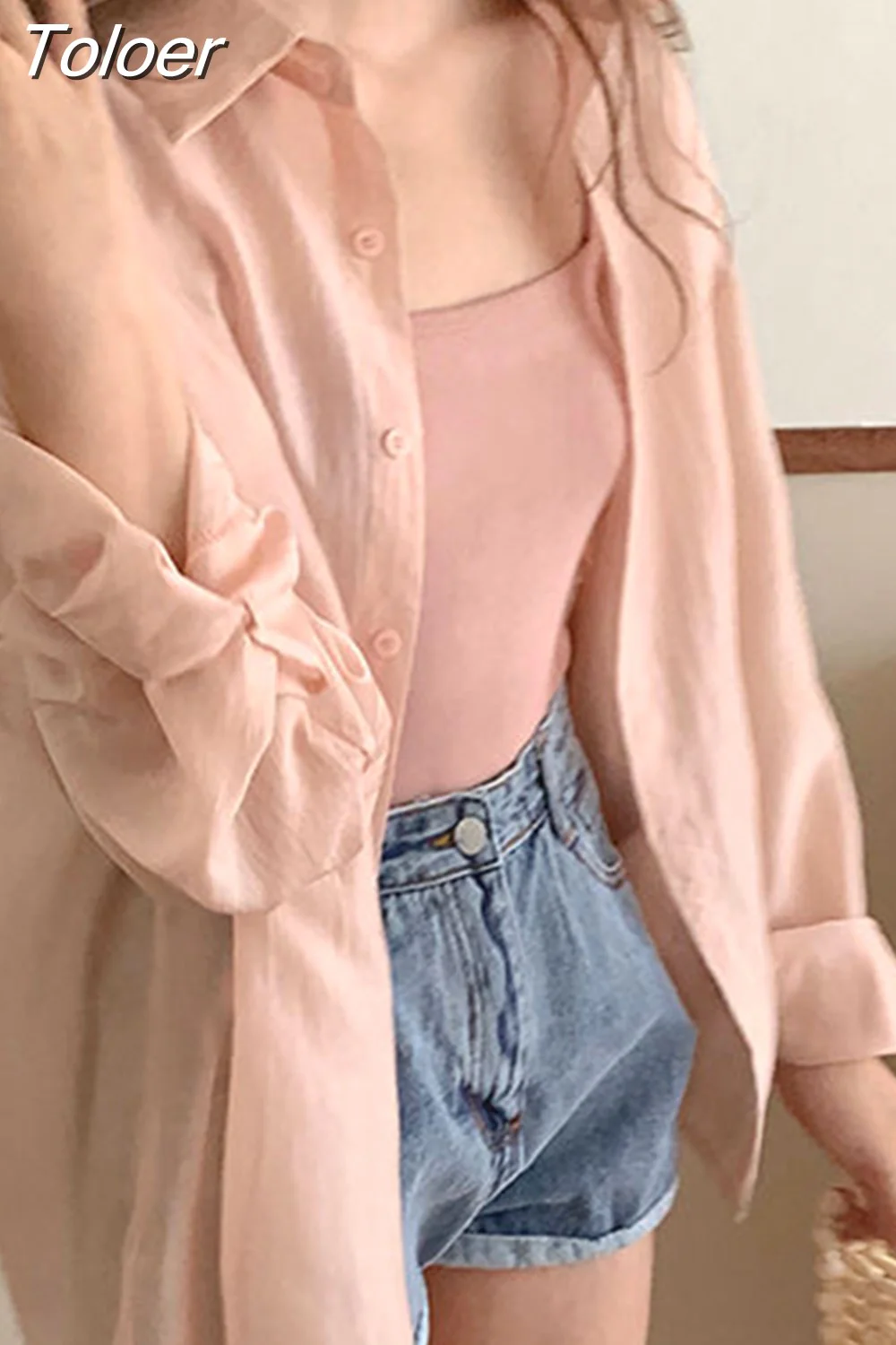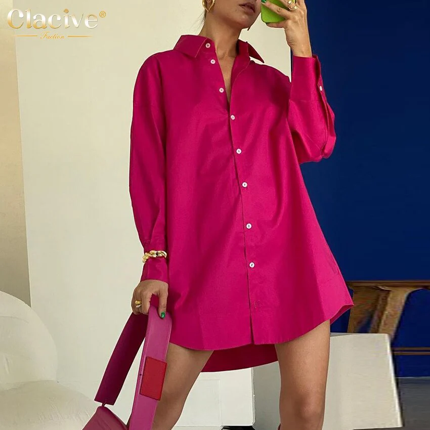 deanwangkt Casual Loose Pink Women'S Shirt Elegant Long Sleeve Office Fashion Blouses Simple Blue Lapel Shirts Tops Female