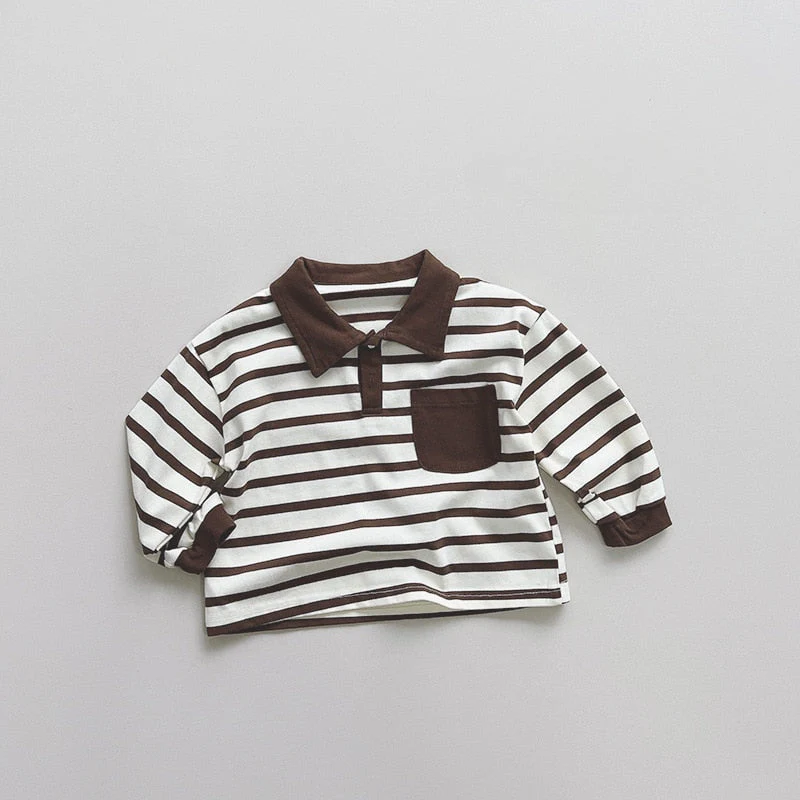 deanwangkt Autumn Kids clothes contrast color Turn-down collar Boys T shirts Girls cotton long sleeve Tops