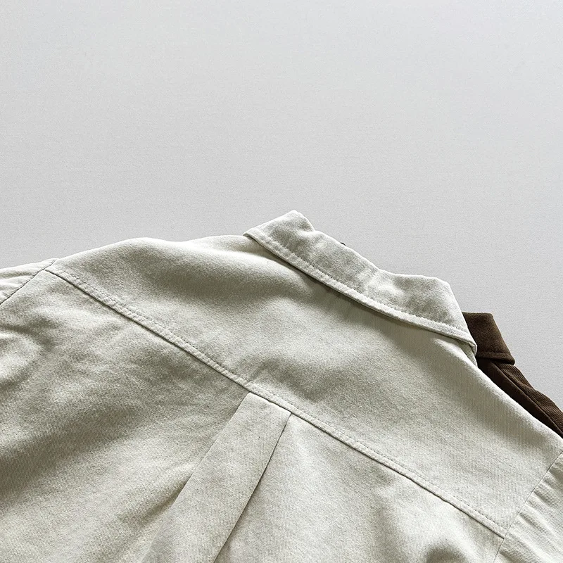 deanwangkt Autumn Boys solid color cotton shirts Girls brief turn-down collar casual shirt Kids Tops